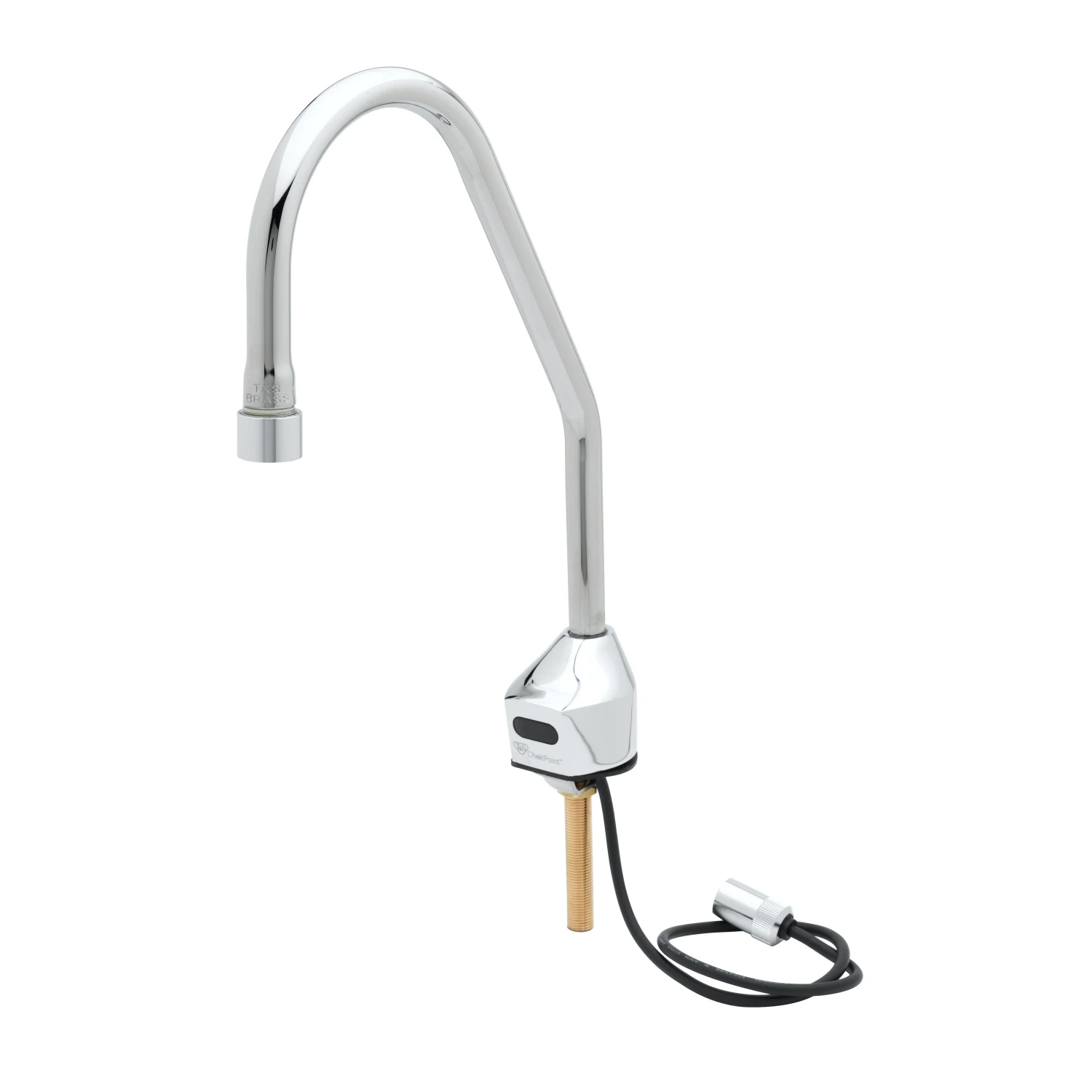 Single hole deck mount electronic sensor faucet with polished chrome plated brass body and surgical bend rigid gooseneck, 2.2 GPM vandal resistant laminar flow device, AC/DC control module with internal flow control settingswitches, temperature control mixing valve with check valves and 18" flexible stainless steel supply hoses with 3/8" compression connections. Certified to ASME A112.18.1/CSA B125.1, NSF 61- Section 9,NSF 372 and UL 1951. Meets ADA ANSI/ICC A117.1 requirements.